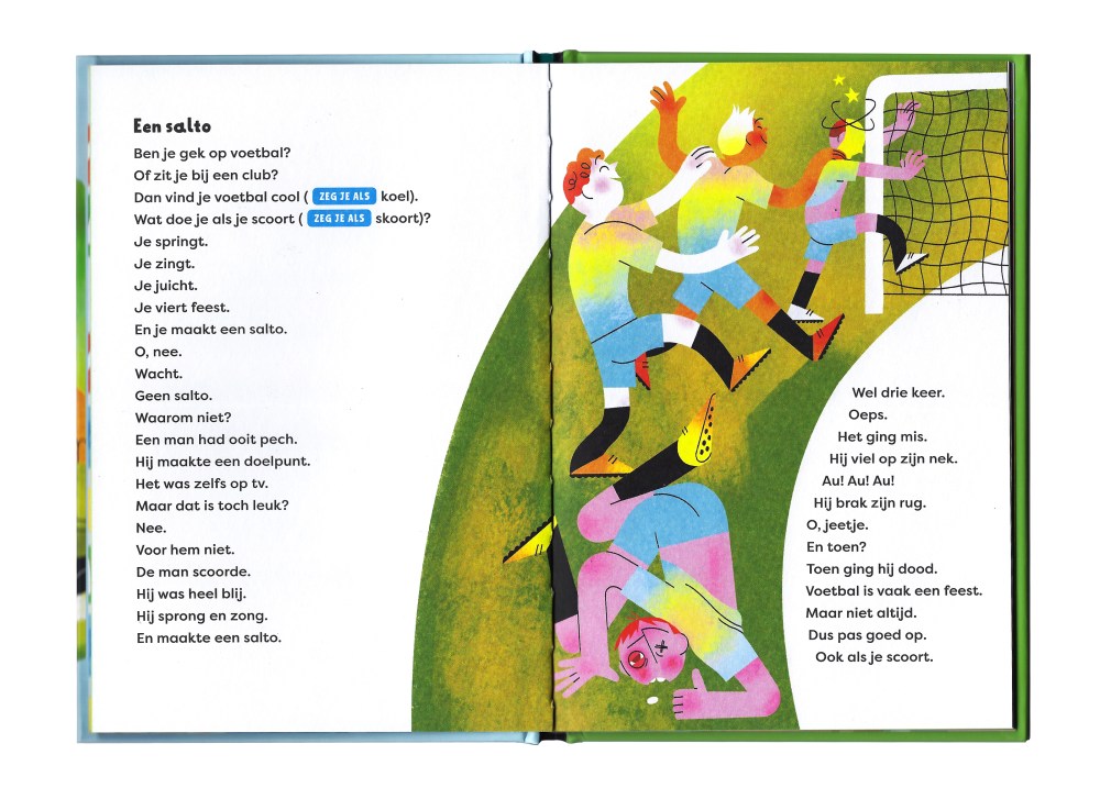 For Volt Children’s books I illustrated “Voetbal is (g)een feest” (“Football is(n’t) a party”) for a new non-fiction learning-to-read series: “BAM! Ik lees…” (“BANG! I read…). I made 14 colorful illustrations accompanying the words written by Fred Diks.
