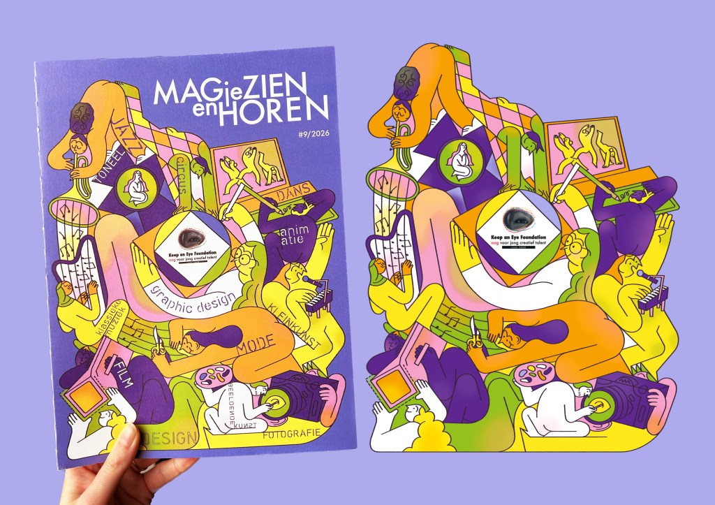 The cover for the ninth issue of the magazine of the Keep an eye Foundation, where all of the disciplines they support are woven together in one big illustration.