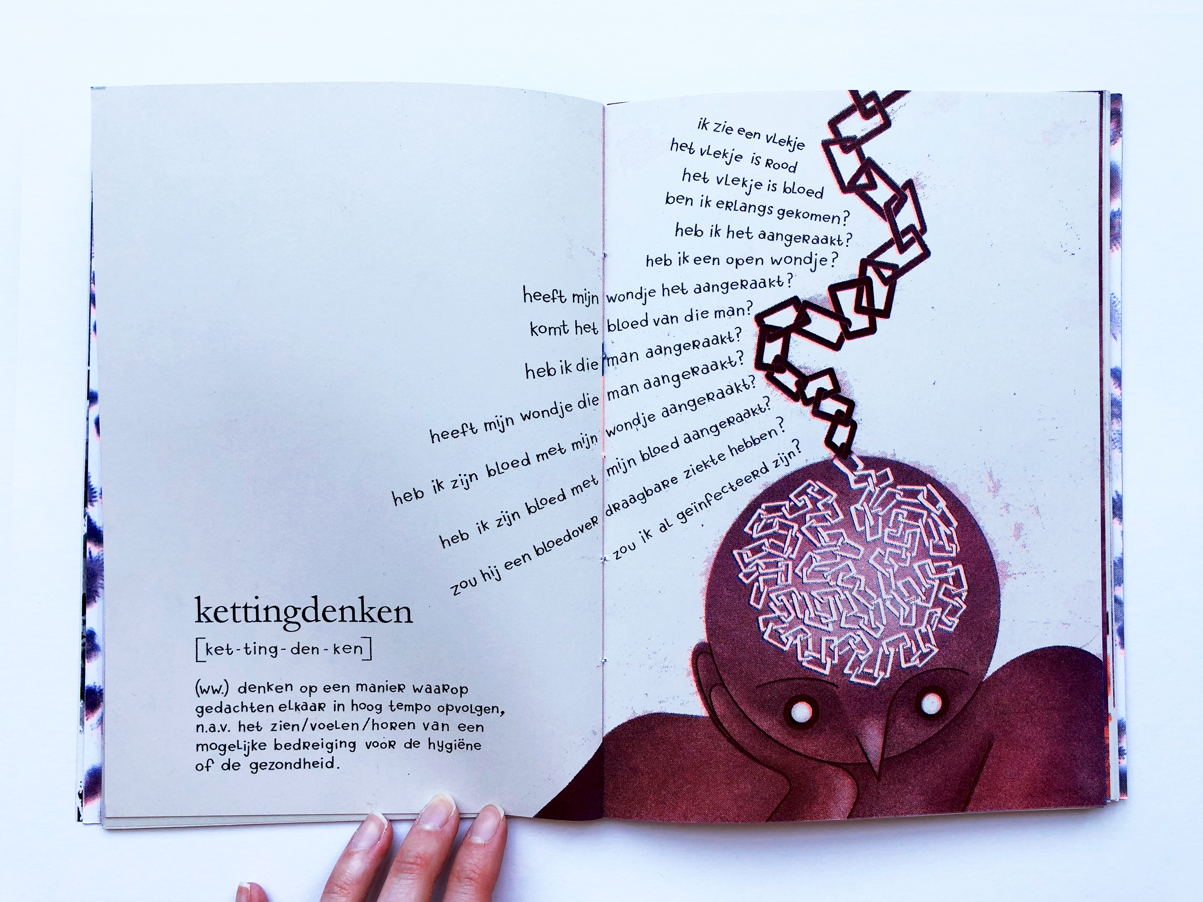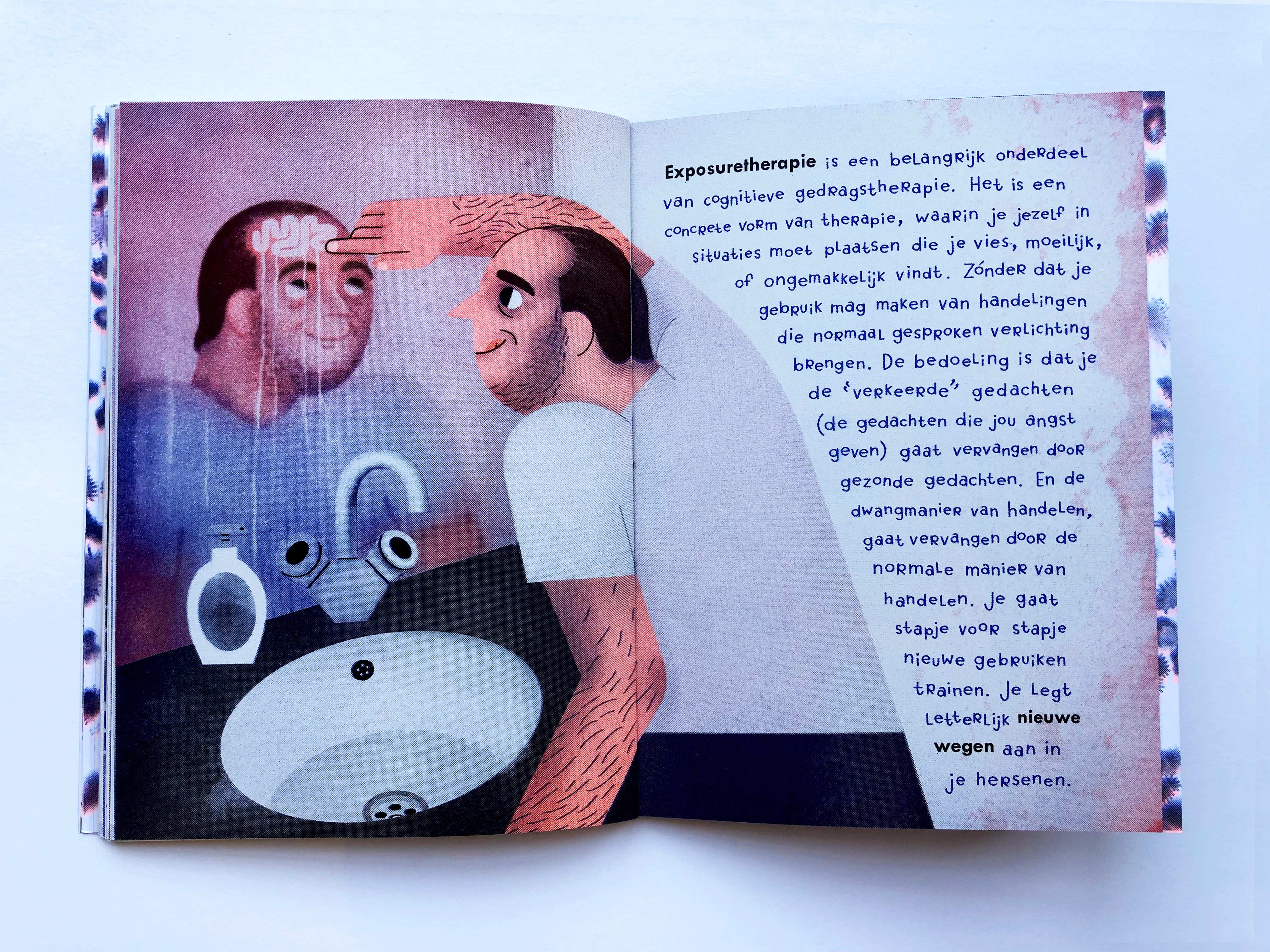 In Smetje I visualise what having germaphobia means, by using comparisons, metaphors and personal stories of people who experience it. I make it understandable – for people who have it themselves, but also for the people around them who want to understand their loved ones better.