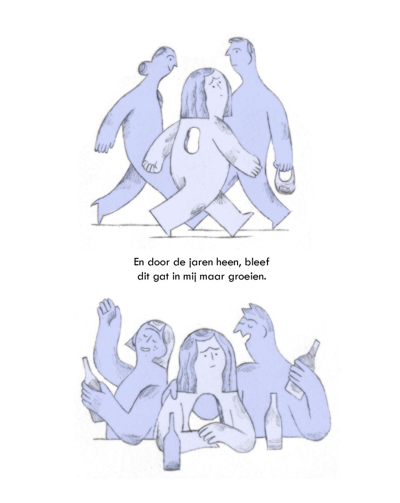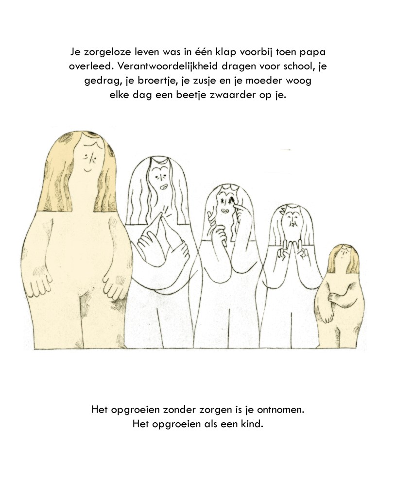 For this project I’ve had conversations with other people who have lost a parent before they turned 25, about how they have experienced, and are still experiencing, this loss. I visualise their stories, thought processes, feelings and fears through illustration, because sometimes it’s better to draw something, than to explain something.