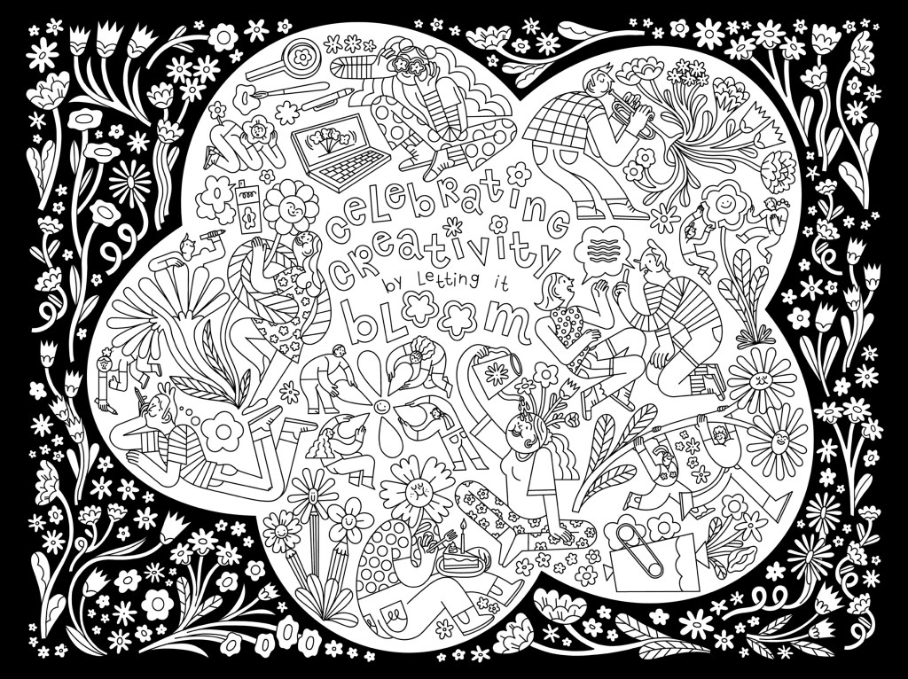 For The Art Department 2026, Playgrounds asked me to design a coloring page celebrating creativity and their 20th anniversary.